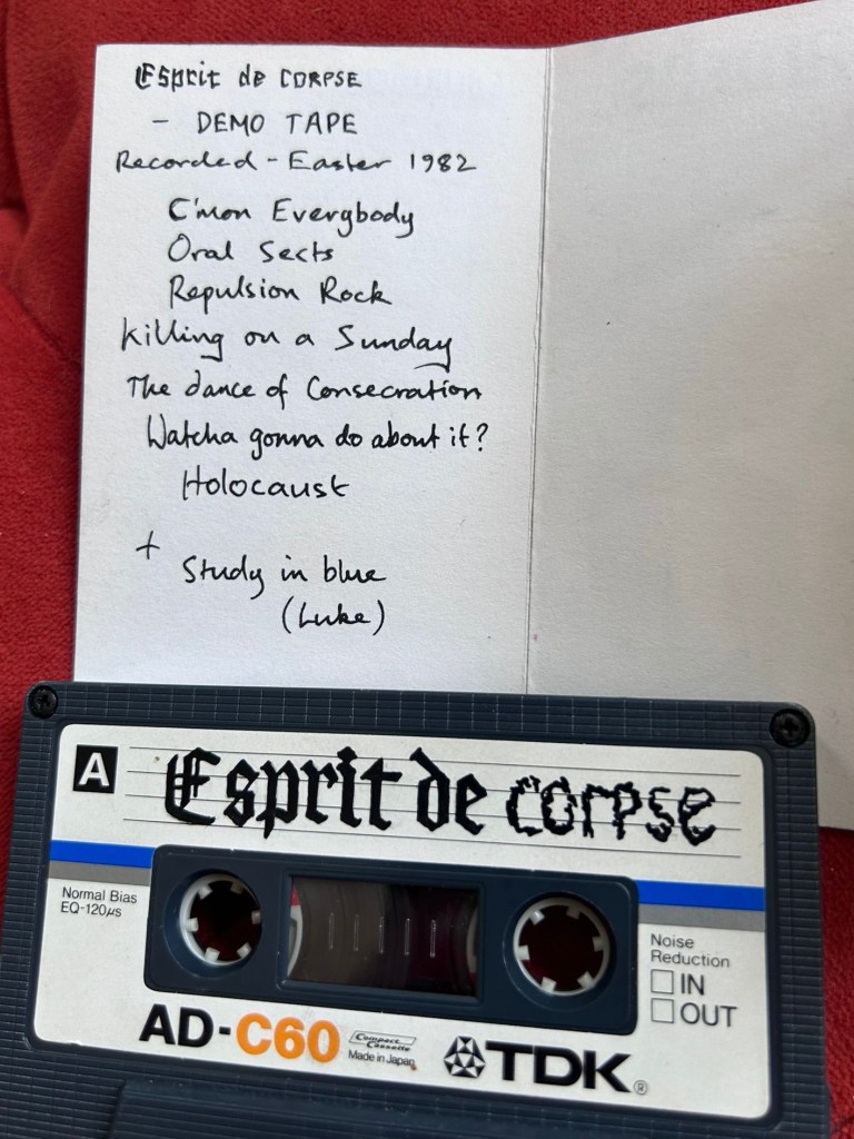 Snapped in Luke’s back garden during an early ‘80s band practice — the original Esprit de Corpse line-up, plus a few hangers-on who probably just came for the Jammie Dodgers. No gigs yet, but the post-puberty angst was peaking, and someone had a camera. Classic garden punk vibes: patchy lawns, questionable haircuts, and the sense that something noisy was about to happen.