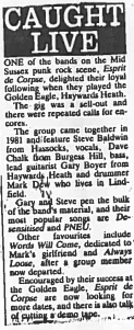 Sweaty gigs, torn posters, blurry photos, and the kind of newspaper reviews that prove no one really knew what was going on — but we made the headlines anyway. This is Esprit de Corpse in full stomp: raw, loud, and leaving no village hall unscathed.