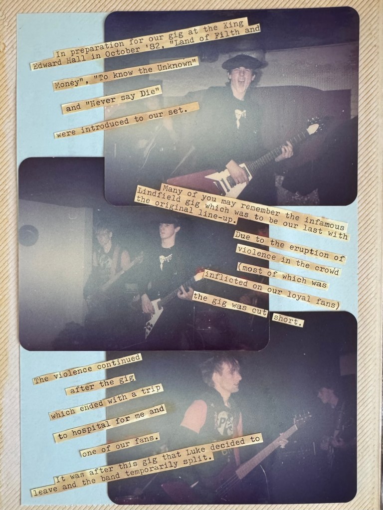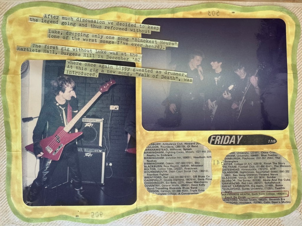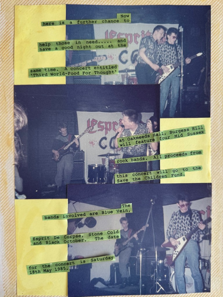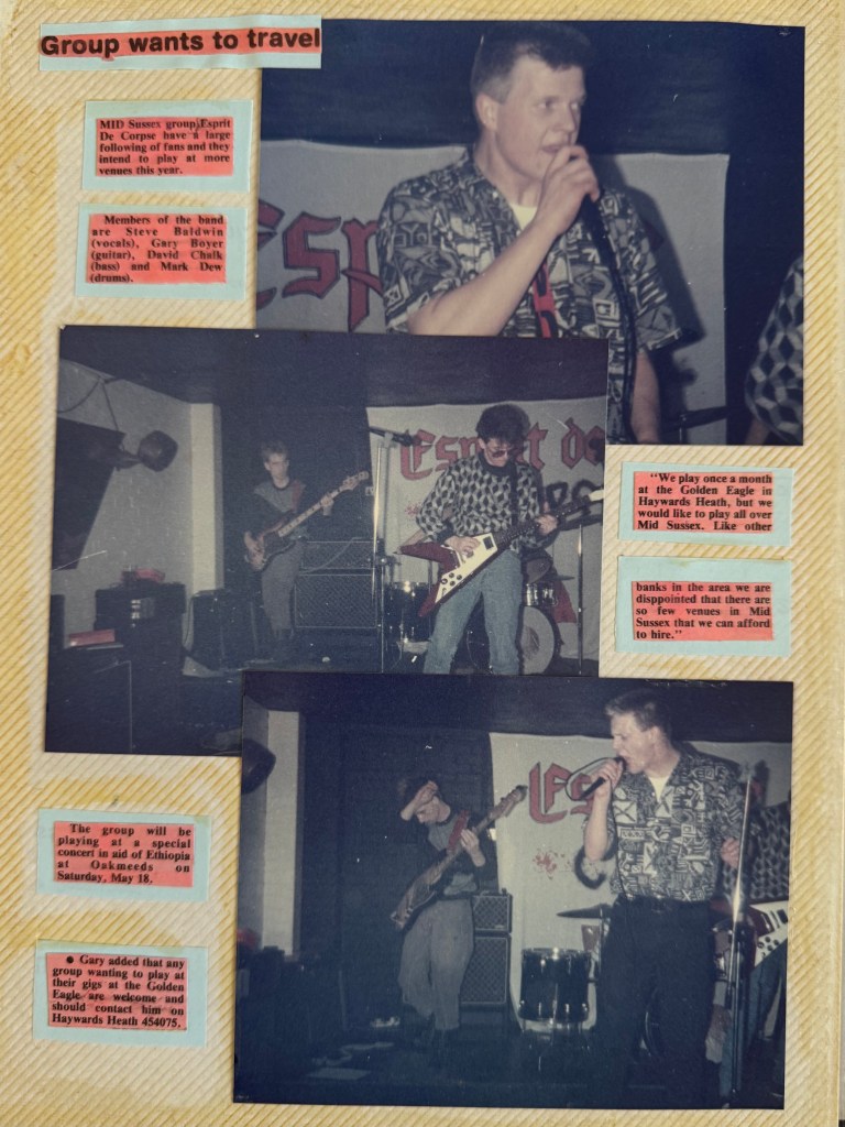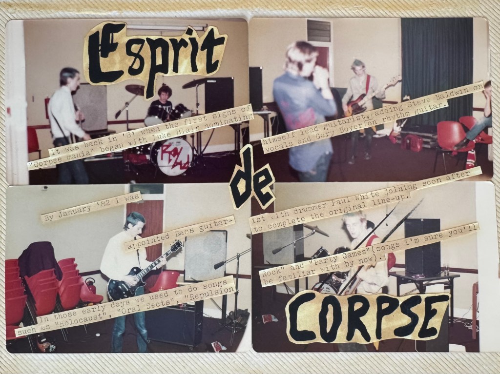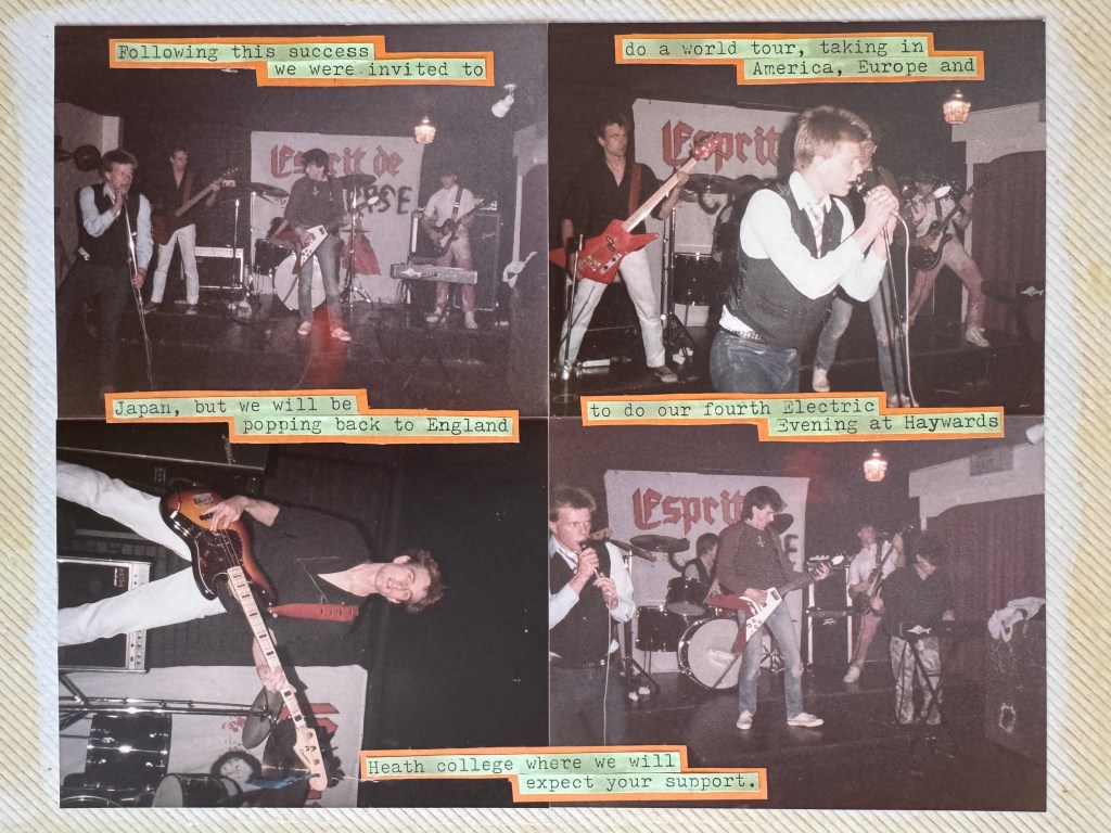 Welcome to the Definitive Scrapbook of Doom — part archive, part art attack, part accidental time capsule. Compiled in real time by a teenage bass-playing chaos merchant with a glue stick and a grudge against straight lines, this is Esprit de Corpse in raw, analog glory. Gig posters, scribbled memories, dodgy reviews, and whatever else I could stick down before the paper gave up. It’s messy. It’s loud. It probably still smells like hairspray and chip fat. But if you want to know what punk looked like from the inside of a teenage bedroom in the 1980s — this is it.