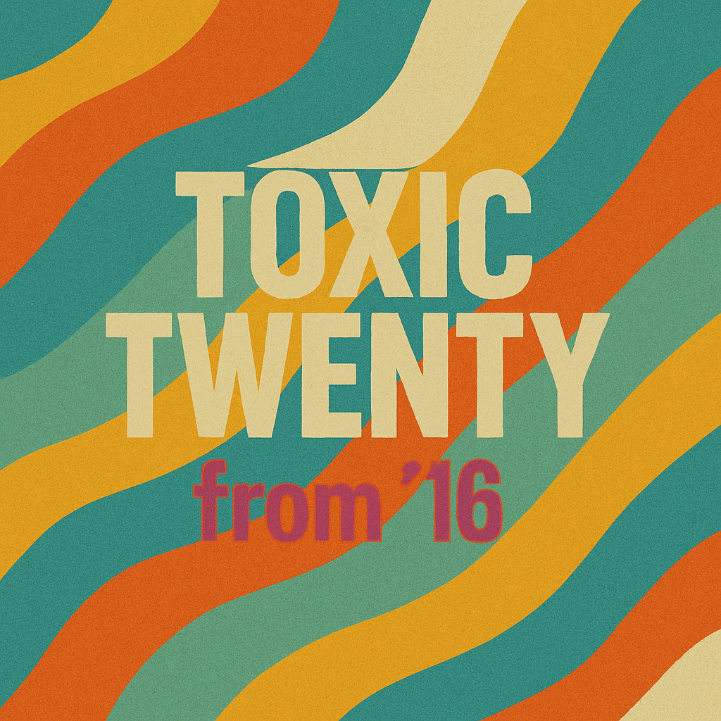 Toxic Twenty 2016 features my handpicked top 20 tracks of the year, brought to life through custom LP-style artwork. A snapshot of the era’s sound, style, and attitude—from the iconic to the underground. Full playlist and streaming links are below.