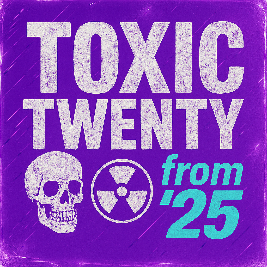 Toxic Twenty 2025 features my handpicked top 20 tracks of the year, brought to life through custom LP-style artwork. A snapshot of the era’s sound, style, and attitude—from the iconic to the underground. Full playlist and streaming links are below.